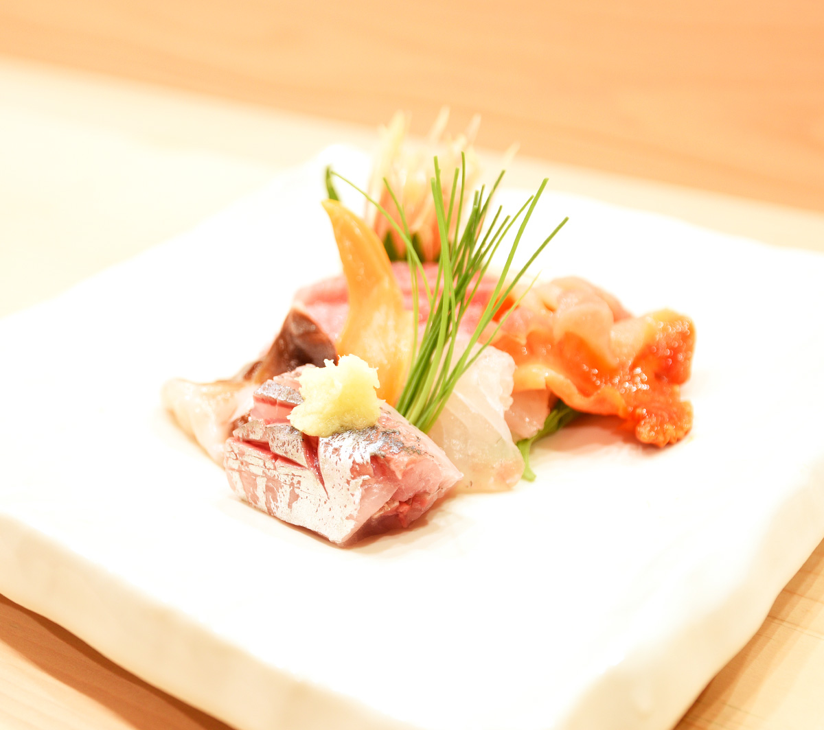 鮨を食べる前にいろいろつまみを楽しんでもらうと、